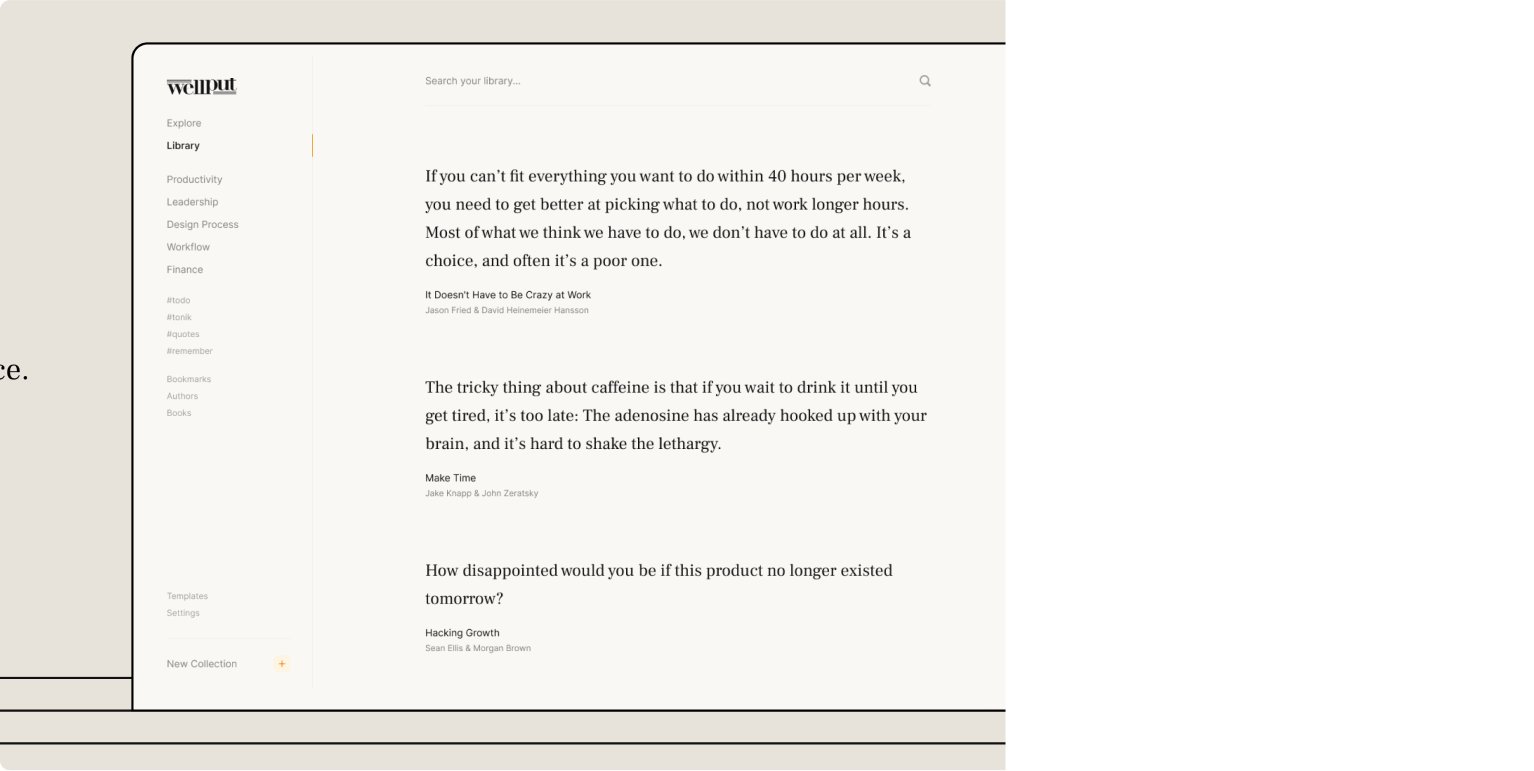 Wellput was an internal Tonik product built from scratch to turn passive highlights into structured, retrievable knowledge. I led product discovery, defined strategy, and later owned product direction through MVP delivery (2020–2021).