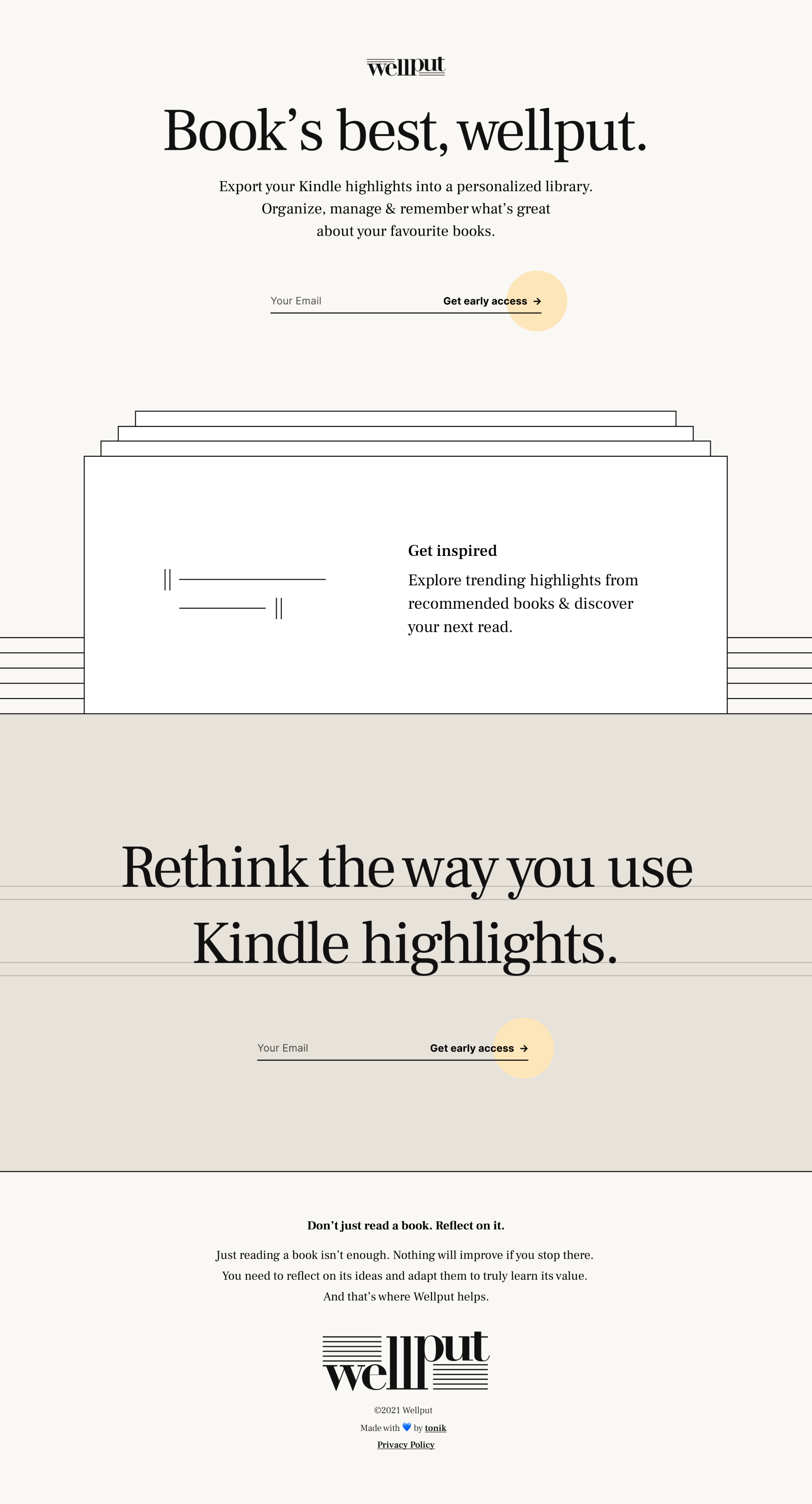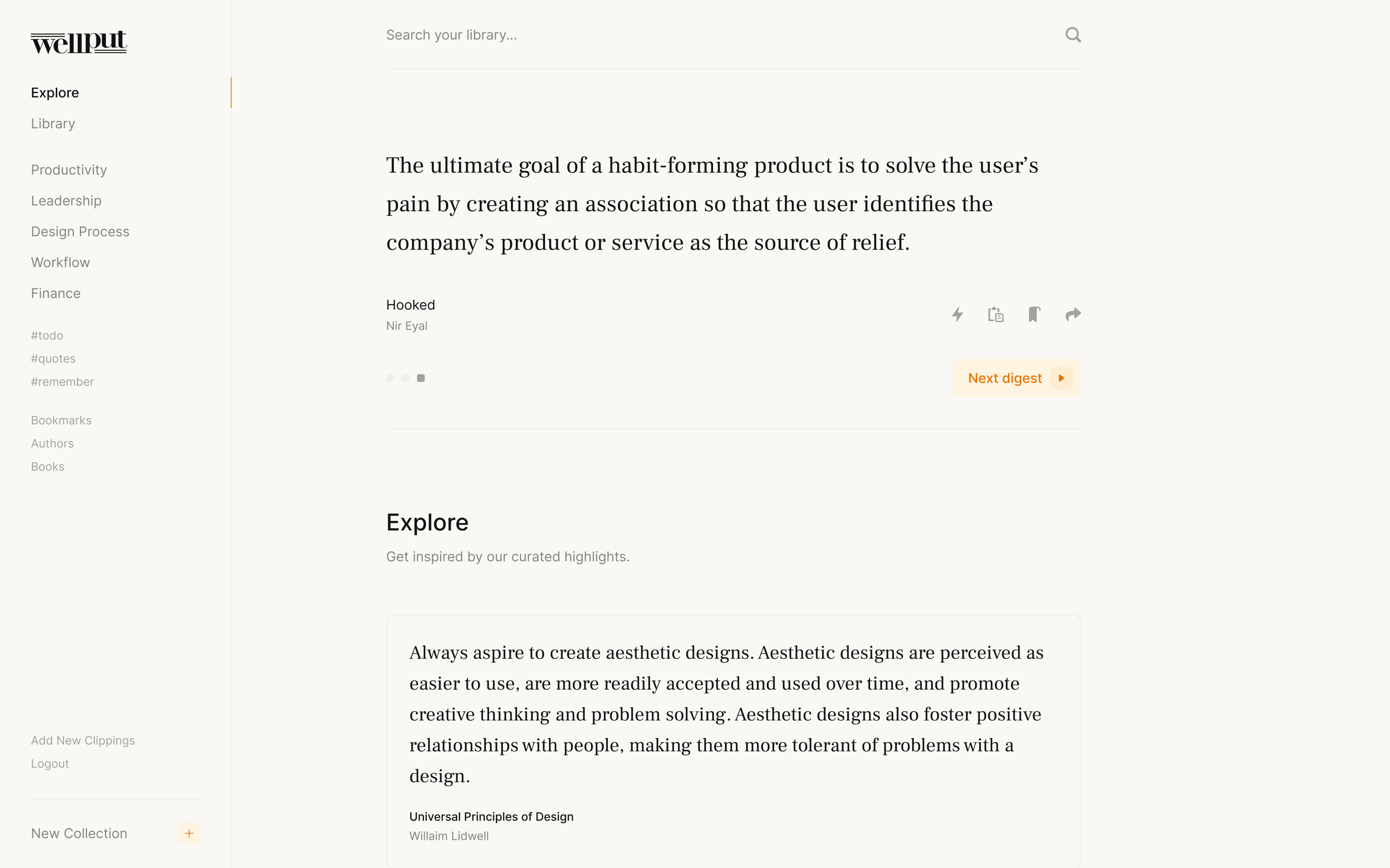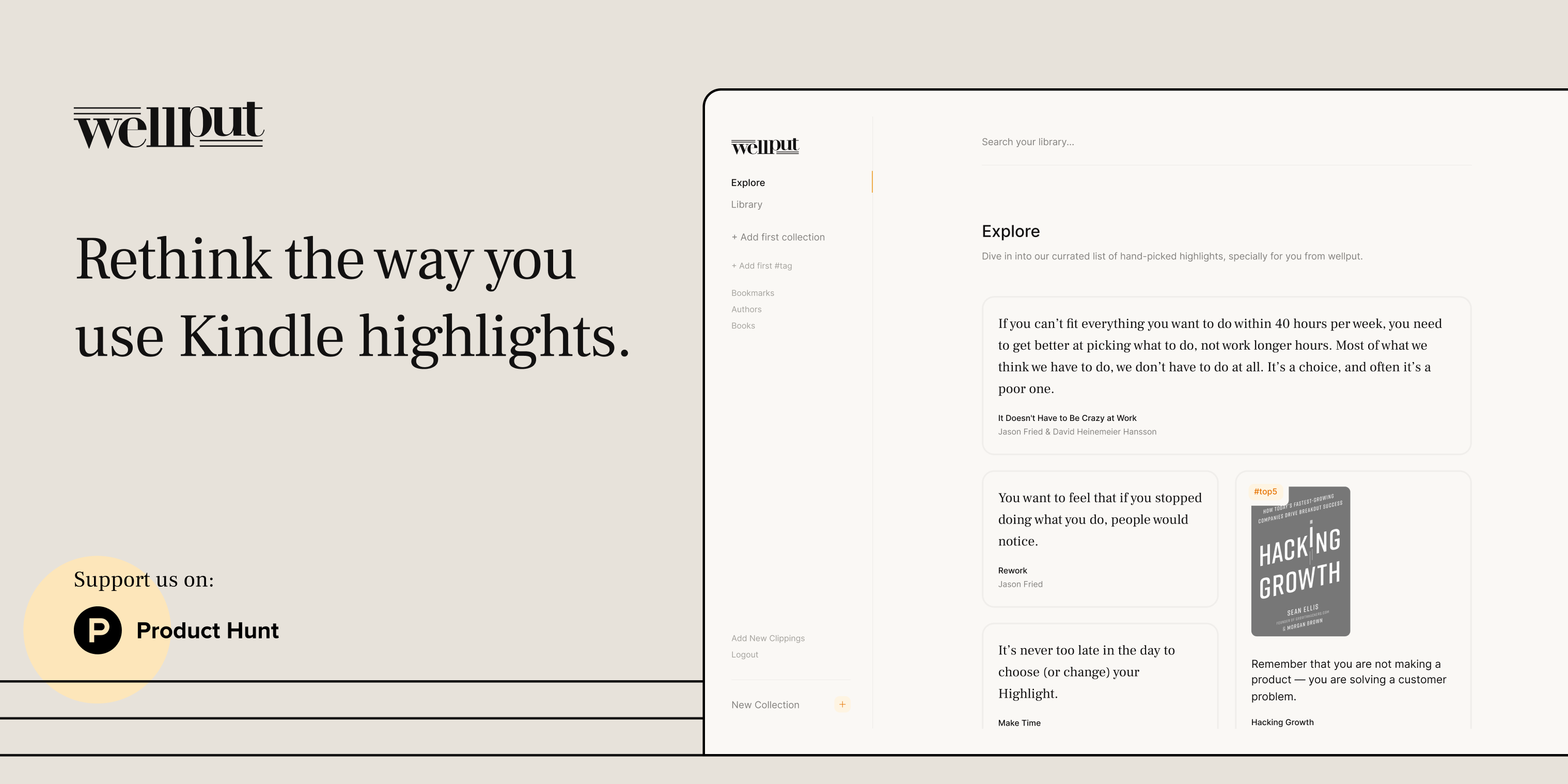 Wellput was a Tonik’s venture, built from scratch to turn passive highlights into structured, retrievable knowledge. I led product discovery, defined strategy, and later owned product direction through MVP delivery (2020–2021).